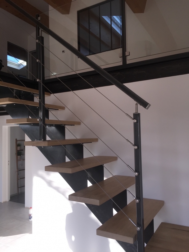 Vous souhaitez un escalier authentique? DNR Constructions métalliques préconisent un style d’escalier contemporain et proposent de nombreux modèles sur mesure et réalisés à partir de matériaux nobles. Le bois et le métal apportent, eux, une touche moderne à l’environnement. Le mariage du bois, du verre et du métal procure une élégance et un souffle nouveau à la décoration intérieure. Laissez-vous convaincre par nos escaliers bois et bois-métal, moderne et design.